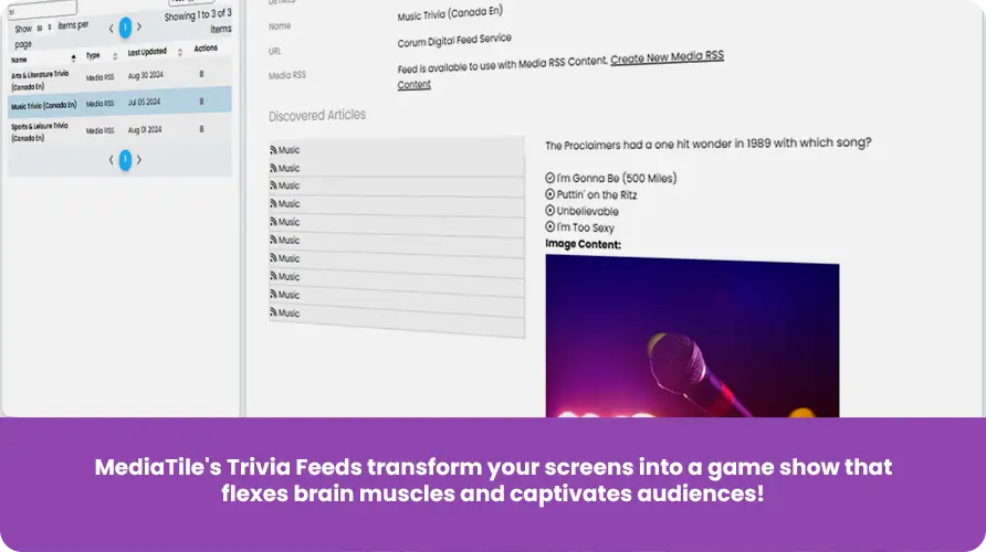 Ready to turn your screens into a game show that'd make Alex Trebek proud? MediaTile's Trivia Feeds are here to flex those brain muscles and keep your audience more engaged than a cat with a laser pointer!